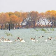 湖泊之美:湿地内星罗棋布的湖泊如同大地的眼眸,清澈而深邃。湖水在微风的吹拂下波光粼粼,倒映着天空中洁白的云朵和周围的绿树青山。湖面上,时而有野鸭嬉戏,它们欢快地划动着双蹼,在水面上留下一道道涟漪;时而有优雅的天鹅游过,它们那高贵的身姿仿佛是湖中的仙子,给这片湖泊增添了一抹灵动的色彩。
