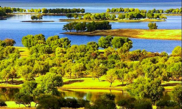 向海国家级自然保护区素有“东有长白、西有向海”的美誉,这里的地形为典型的草原湿地地貌,拥有霍林河、额木太河、洮儿河三条大河横贯其中,还有上百个自然泡沼星罗棋布。这里的夏季绿意盎然,秋季则色彩绚丽、秋高气爽,这两季是每年很好的旅游季节。