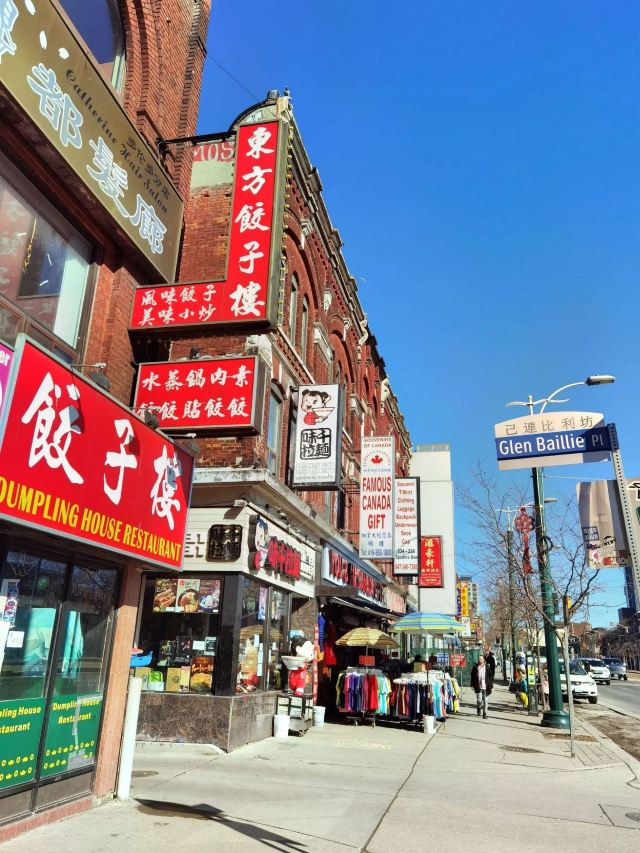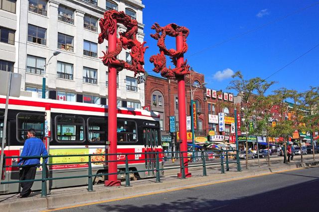 多伦多华埠自1878年起,由来自新加坡、越南等地的华侨聚居在此逐渐形成规模。目前这里汇集了多家中国餐厅、商店、蔬果市场、推拿中心等,装饰和风格颇具中国特色。每年春节是多伦多华埠非常热闹的时候,特色的舞龙游行在喧天锣鼓的伴奏下进行,热闹非凡。每年6月在安大略湖举办的龙舟大赛,已成为多伦多夏季的文娱盛事。