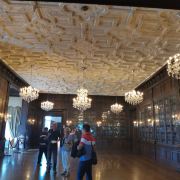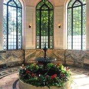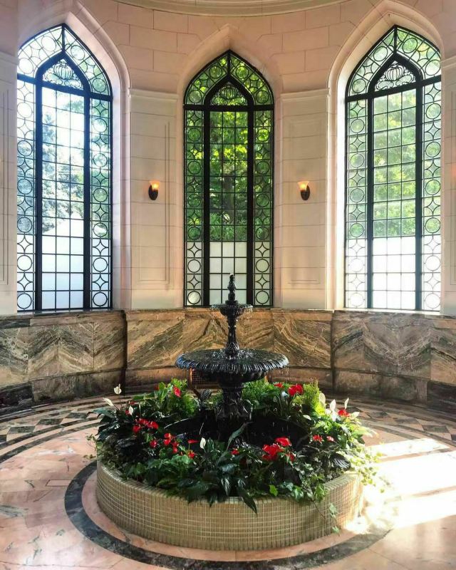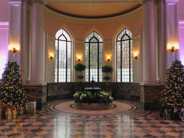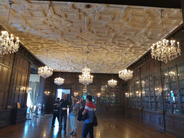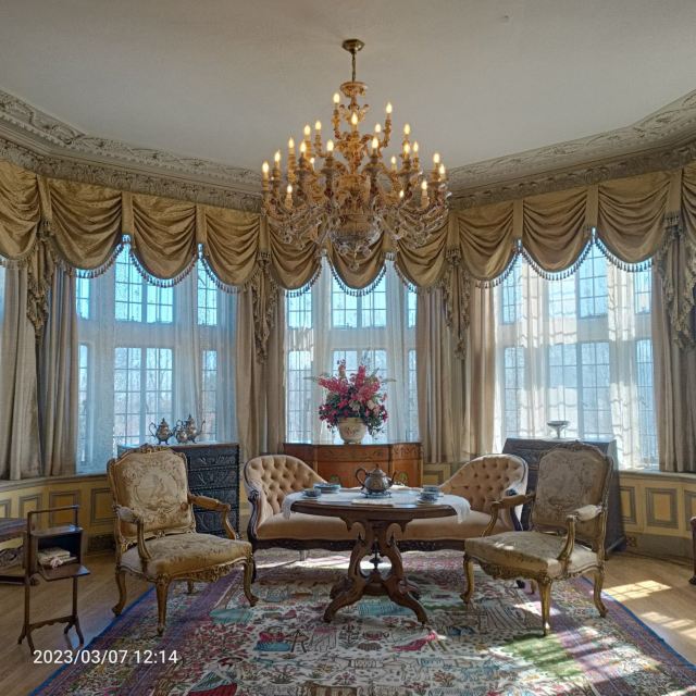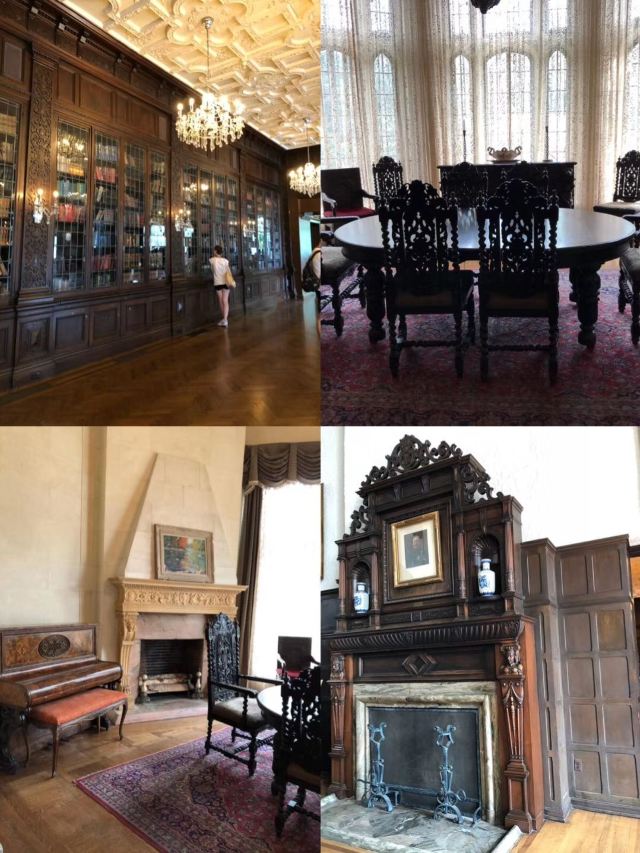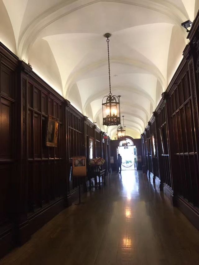一楼的大厅天花板是美丽的石膏和精致的雕花,从伊丽莎白时代的宫殿获取灵感而建。花园温室是较美的地方,地板是意大利大理石铺成,壮观的彩绘玻璃穹顶很是精美。藏书大厅的书柜高至天花板,宴会厅的装饰也是异常华美。