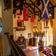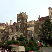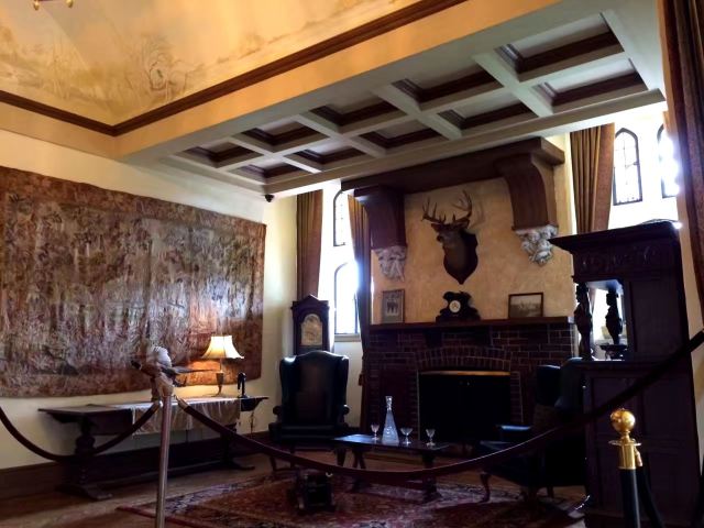 古堡是亨利·柏拉特为爱妻而建的房子,城堡被命名为CASA LOMA,意为“山坡上的房子”。青铜大门、秀美的城垛、高耸的塔楼,经历了100多年的历史,还是处处能看得出来的这座古堡的精美和华丽。先进之处,在于两个卫生间,在100多年前已经用上了淋浴系统。