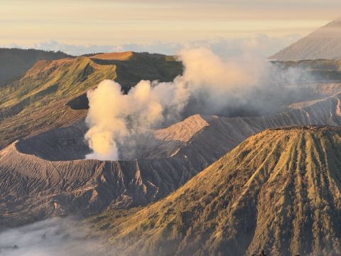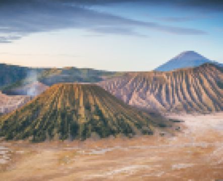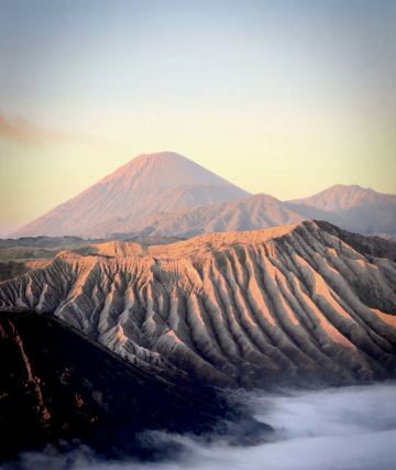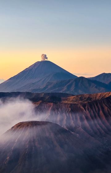 布罗莫火山位于印度尼西亚东爪哇省,是东爪哇省的一座活火山,也是腾格尔火山口的一部分。游客可以乘坐四驱车或徒步穿越腾格尔火山口,欣赏壮观的火山地貌和独特的自然景观。清晨时分,登上布罗莫火山的观景台,可以观赏到日出时分的壮丽景色,云海翻腾,美不胜收。此外,游客还可以参观附近的桑迪海沙漠,体验骑马或骑骆驼的乐趣。布罗莫火山周边的村庄保留着传统的爪哇文化,游客可以深入了解当地居民的生活方式和传统手工艺。
