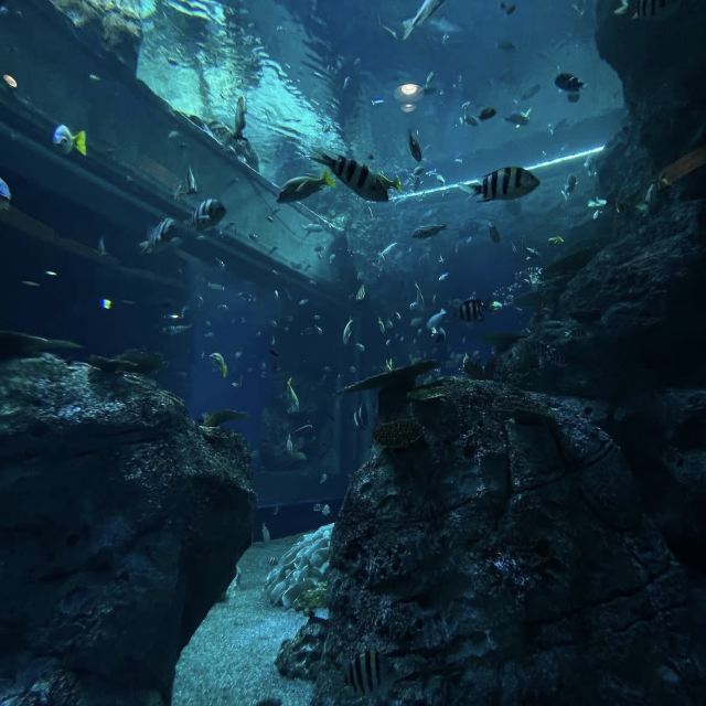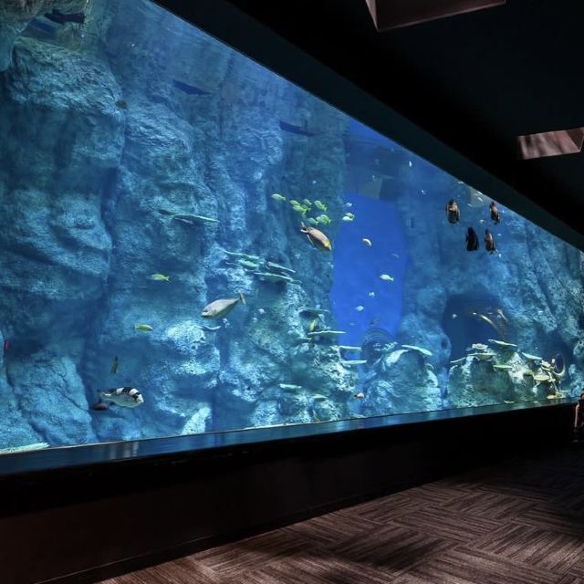 在排列着独立鱼缸的展区,展示着韧鱼、具有毒性的海蛇和斑鳍雀鲷等热带鱼以及色彩艳丽的珊瑚,共计约150种。在迷你鱼缸展区,展示着海马、雀尾螳螂虾等约20种外形及生态独特的生物。