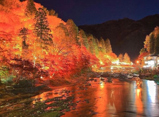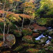 香岚溪是日本东海地区第一红叶名所,位于奥三河足助町的国家公园。香岚溪名字的由来,是用香积寺的“香”及京都枫叶名所岚山的“岚”组合而成的。17世纪前叶,参荣禅师参读一卷《般若心经》后,即亲植一株红叶树于香岚溪畔。其后人追随其志,也效尤地植树于溪谷山涧。至今,香岚溪畔有4000多株,11种不同的红叶树,巴川美丽的溪流,伴着燃烧着的红叶,宛如锦秋的绘卷,是日本人必游的红叶胜地。