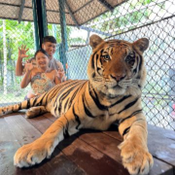 普吉老虎公园是一家位于普吉岛的动物园,以其独特的老虎体验而闻名。园区提供了多种与老虎互动的活动,包括与老虎拍照、喂食和观看老虎表演等。游客可以与老虎亲密接触,并了解他们的生活习性。