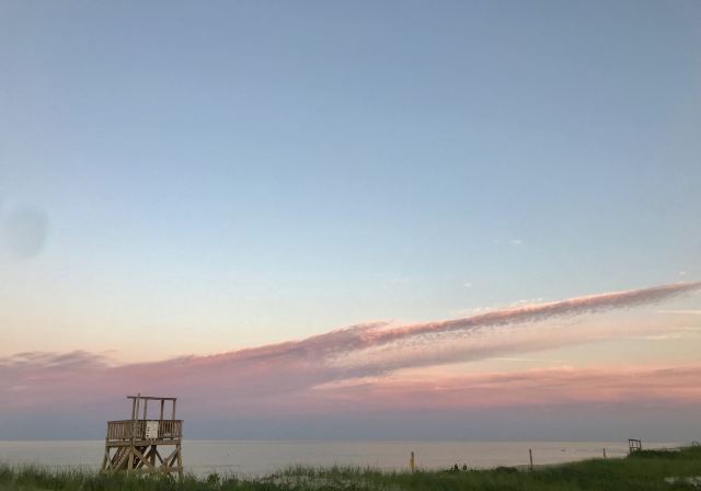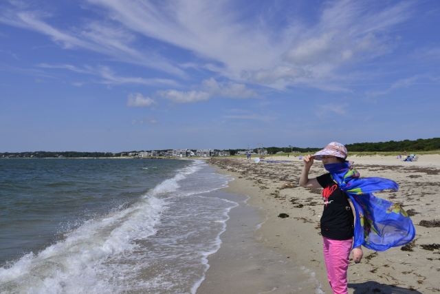 行驶在科德角上是一件非常惬意的事情。半岛很大一部分是由沙子组成的,所以经常能看到大片的沙地伸向海中,在这个纬度恐怕是独一无二的。沙地间点缀着丛丛蒿草和涨潮后潴留下的海水,白草黄沙碧水,绝对是难得一见的大风景。有的地方半岛变得很窄,只有不到两公里宽,东边是浩瀚无垠的大西洋,西边是同样望不到边的科德角湾,仿佛走在通向天国的路上,两边是壮阔的云海。
