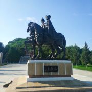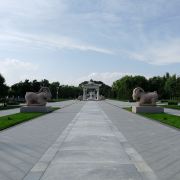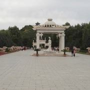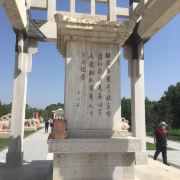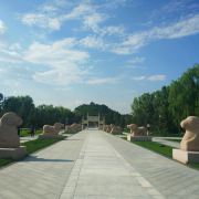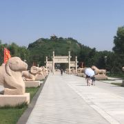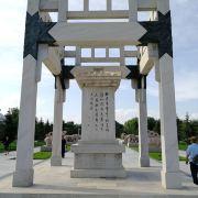 当你走进景区,首先看到的是大型铜铸雕像,在往北走,有一块高大的石碑,石碑上用蒙汉两种文字镌刻着诗作《谒昭君墓》:“昭君自有千秋在,胡汉和亲识见高”。石碑后方两侧,七块各代石碑历历在目。你可以沿着石阶上到墓冢的顶部,在这里可以可看到连绵不断的阴山横贯东西,也可以欣赏到呼和浩特市全景。