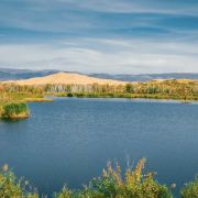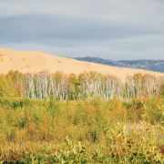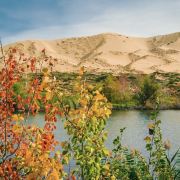 微信小程序白沙湖位于哈巴河县西北侧的185团三连(由于新疆生产建设兵团是以民兵为主的屯垦团,这里的团和连都是指一个地区,一个连大约相当于一座村子),距离哈巴河县城的车程约70公里,布尔津县城车程约160公里,是一处沙漠环绕的宁静湖泊。白沙湖外围有连绵起伏的沙漠,但湖边却绿树成荫,湖面水波粼粼,强烈对比的画面十分奇幻。每年秋季是游玩白沙湖热门的时节,此时湖边的树叶都变成红黄两色,非常鲜艳,是拍摄红叶好的地带。夏天时前来也很不错,湖中可以看到新疆少见的莲花开放。冬天和初春时这里则会非常寒冷,湖面也会封冻,不适合前来游玩。白沙湖景区的大门位于Z840公路旁,景区大门到湖边还有约2公里的路程,可以步行前往,也可以购买10元的往返车票乘电瓶车直达湖边(电瓶车为循环发车,返回时可以随意乘坐任意一辆)。到达湖边后,便可沿着木制栈道步行游玩。在湖边漫步观光是游玩白沙湖景区主要的内容,湖边的木制栈道大约长1公里,步行在栈道上,可以尽情欣赏树影婆娑的湖滨美景。栈道的尽头是一处观景台,这里观看湖泊的视野比较开阔,对面正好有一座沙山倒映在湖面上,画面旖旎,是拍照好的地方。游玩湖边后,返回景区大门时建议步行。因为在景区大门和湖区之间还有一处沙丘可以游玩,沙丘不高,顶部修筑了一座凉亭,从公路登上凉亭大约需要15分钟左右。由于白沙湖景区离国境线很近,所以附近可以看到对面哈萨克斯坦的风光,而这座凉亭就是附近好的观赏点,可以在此看到对面宁静的村庄和树林,视野非常开阔。另外,返程到快到景区大门时,还有一小片漂亮的白桦林,可以漫步林中,拍摄美丽照片。餐饮住宿游玩白沙湖景区大约需要3个小时左右,游客在游览景区后一般都会在景区附近用餐。景区大门的对面便是兵团185团三连的所在地,连里的居民都是从内地前来戍边的汉族人,自己在小院子里种满了蔬菜,基本上家家都开了餐馆。如果你已经在新疆吃了很久的重口味菜肴,这里味道清淡的正宗汉族农家菜一定会让你有深深的亲切感。而且在此用餐价廉物美,非常实惠。如果是夏秋季节前来,还可以直接在菜园子里指着时蔬点菜,品尝到正宗的新鲜蔬菜。前来白沙湖,一般是从布尔津或哈巴河县城包车前来,两地均可以一日往返,一般游客均会返回布尔津县城或哈巴河县城住宿。两地接待条件都很好,各档次的酒店、青年旅舍都有,选择丰富。