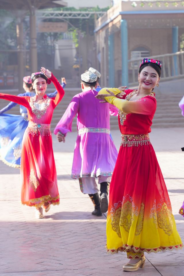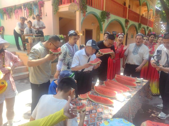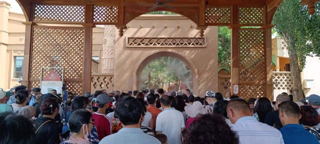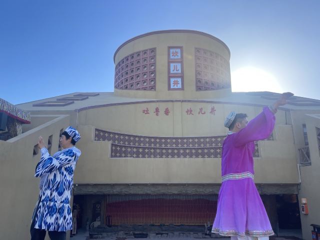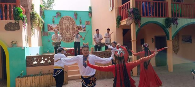 4.庆典广场:在乐队的现场伴奏下,您与一群年轻的村民共跳纳兹库姆,并偶遇落选的”假村长“,让您感受到了吐鲁番的幽默诙谐。