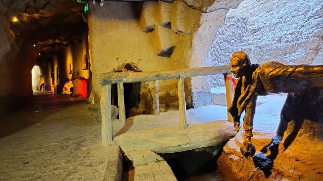 5.博物馆:村长把开凿坎儿井的工具汇聚起来,建了一座坎儿井博物馆,有村民手持不同的挖凿工具,向您展示这些工具的使用方式,介绍村长带领村民们挖凿坎儿井过程中的趣事。