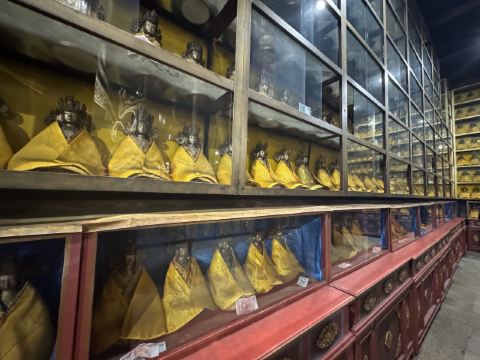 这座寺庙距今有将近200年历史,由当年的主持修建,现在是蒙古非常有名的景点。在Ochidara庙之后有一座巨大的宗喀巴雕像,继续沿主路走到尽头就是壮观的Migjid Janraisig Sud,其中有数百幅长寿佛的画像,还有一些小型的佛像摆放其中,似乎都是在注视着大佛,很是庄重。