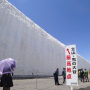 5分 超棒今年4月15号开挖的日本雪墙,在海拔2450米的室堂,高约16米的雪墙让人震撼,上下山需乘六种不同的交通工具,电缆车,高原巴士,隧道无轨电车,空中缆车,地下缆车,无轨电车省时省力。