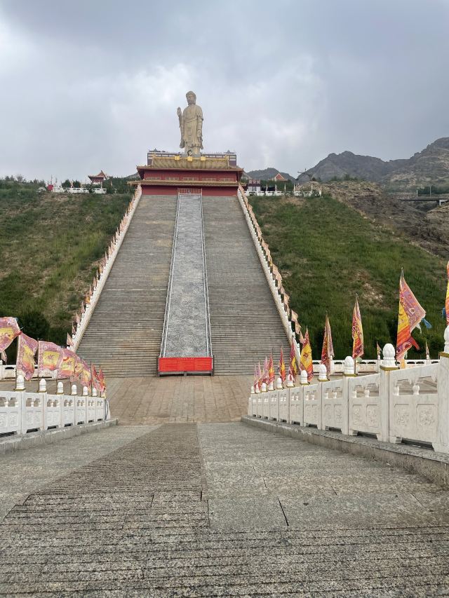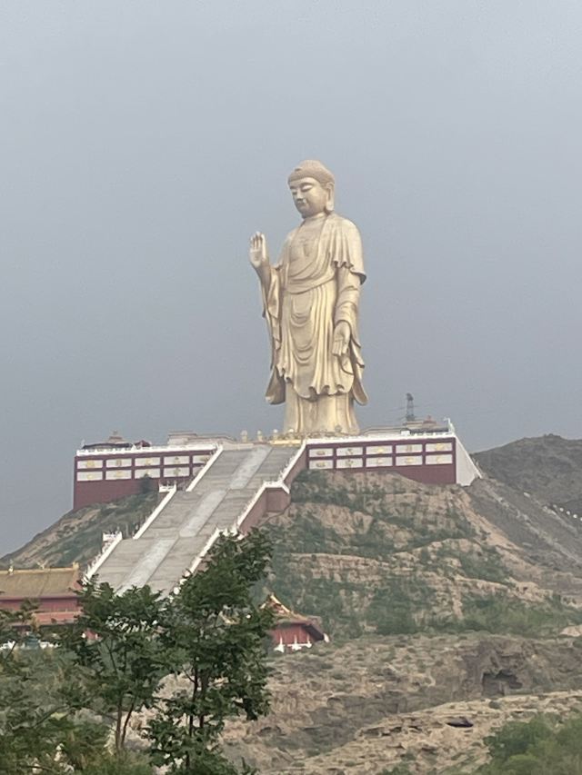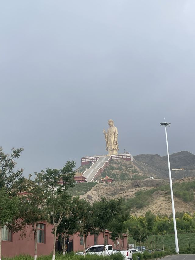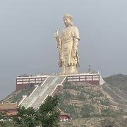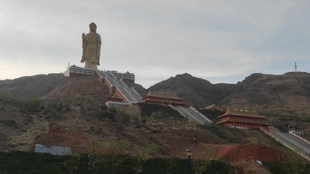 东升庙阳山大佛是释伽牟尼铜身像,就坐落在一个V字形的峡谷之间,始建于2014年,佛高69米,是全国第三大佛像。