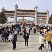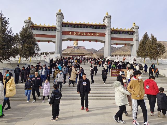 微信小程序东升庙阳山大佛是释伽牟尼铜身像,就坐落在一个V字形的峡谷之间,始建于2014年,佛高69米,是全国第三大佛像。