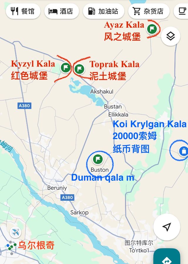 大圈是以上三个加Kirqkiz + Angqa + Guldursun Kala,当然还有其他的选择。