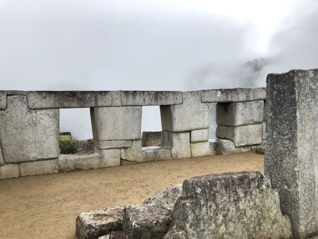主庙,三重窗庙和拴日石所在的区域被称为神圣广场Sacred Plaza。这个区建筑跟马丘比丘其他建筑相比更大,主庙的门楣岩石重达3吨。这个庙只有三面墙,紧挨主庙是一个简陋的小庙,历史学家推测这是牧师准备的地方。