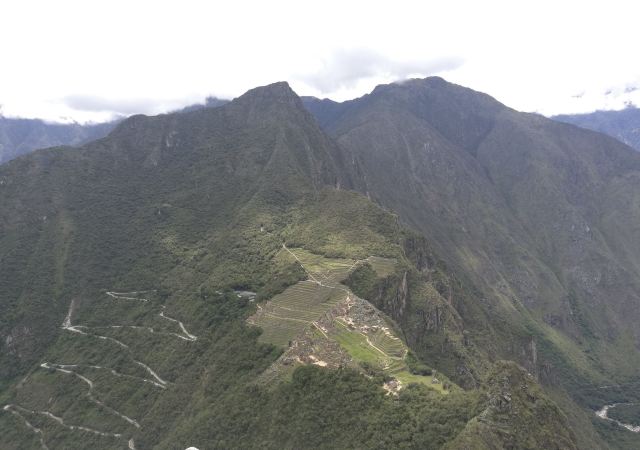 马丘比丘标准明信片照里城市遗址后面那个高耸的山峰。虽然在照片里看起来陡峭得有些吓人,但是爬起来就能发现并不是直上直下。如果不是特别畏高,或是个登高控,一定不能错过爬山瓦纳比丘顶端,站在峰顶巨型花岗岩上俯视马丘比丘,是一个能让你一生难忘的体验。