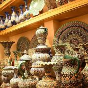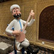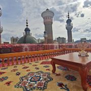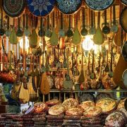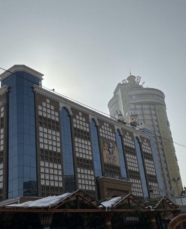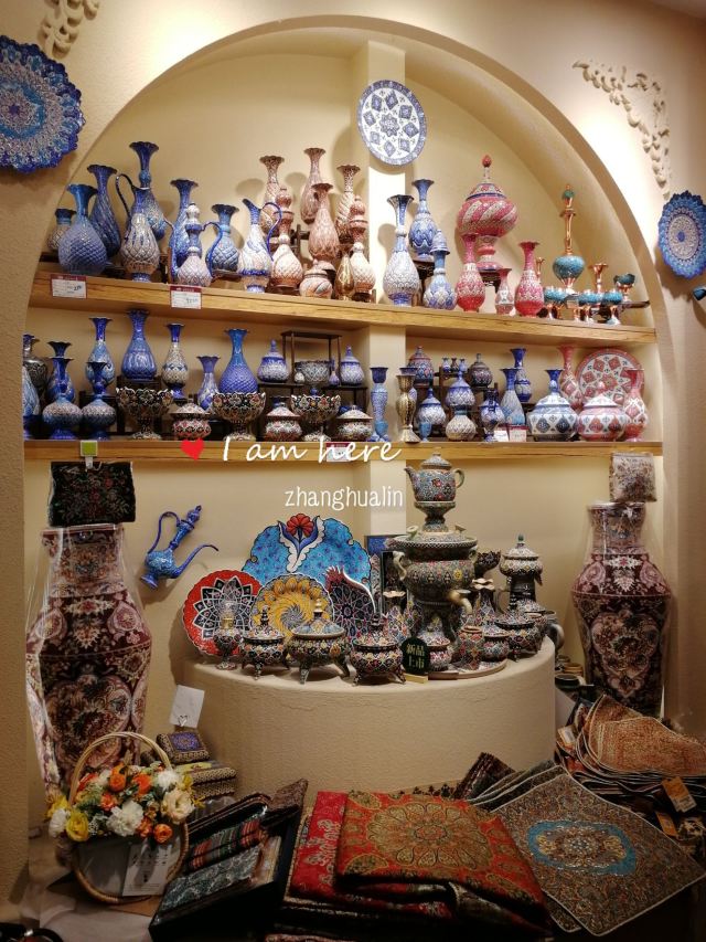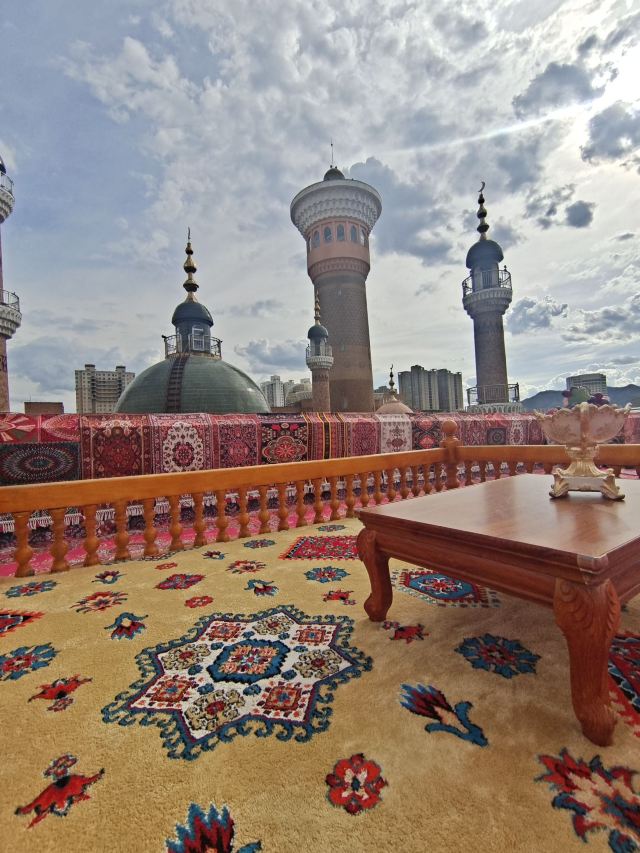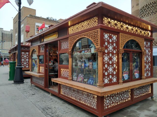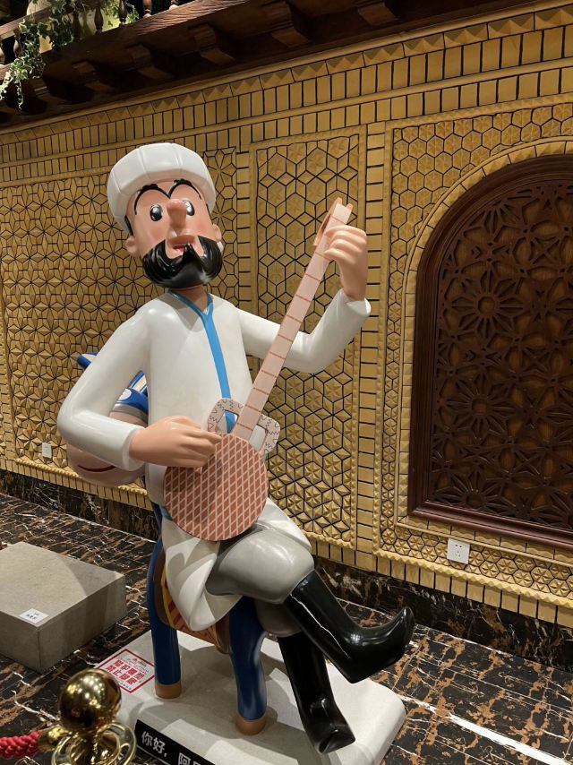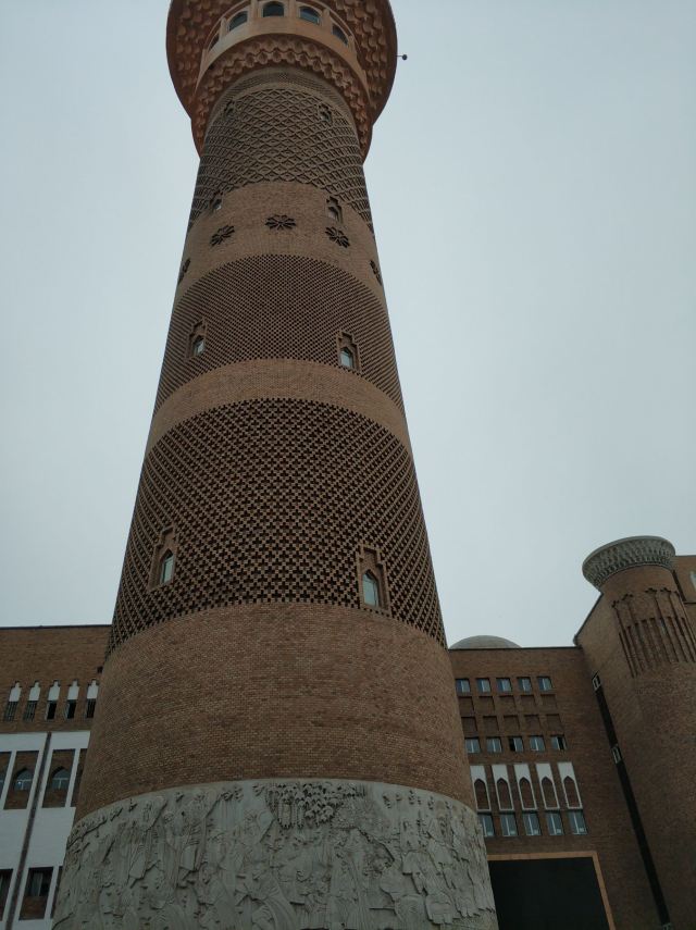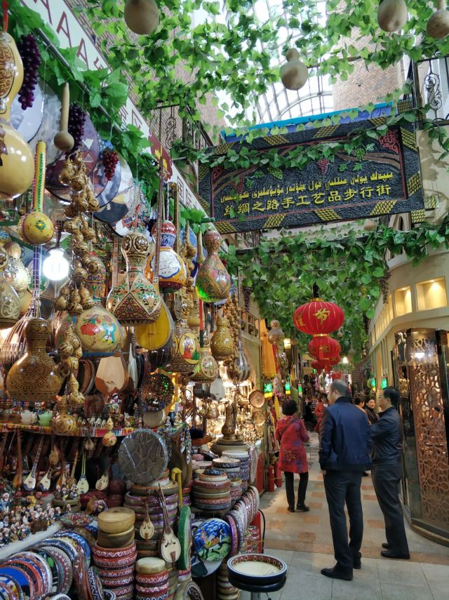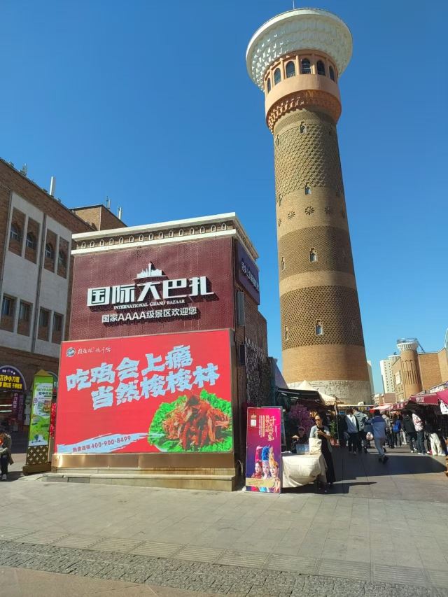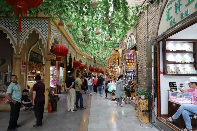 观光塔如巨型都塔尔琴拨动天际线,80米高的金色穹顶下,几何纹样与葡萄藤浮雕在光影中跳起刀郎舞。2000家商铺构成的迷宫里,艾德莱斯绸的绚丽浪涛、英吉沙小刀的冷冽弧光、和田玉的温润呼吸,在维吾尔花砖与波斯地毯的拼贴中,完成一场跨文明的物质狂欢。