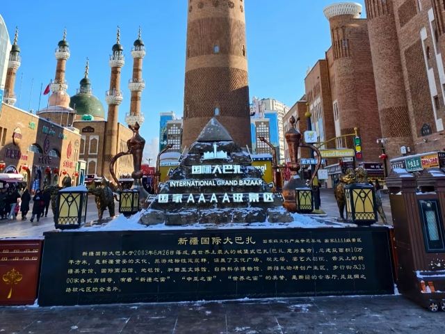 新疆国际大巴扎是集特色建筑、民族商贸、歌舞演艺、特色美食、珠宝玉器等丰富业态于一体的AAAA级景区、文化产品聚集地和展示中心。作为国家认定的文化产业示范基地、新疆文化创意产业平台,每年人流量超过千万人次,是乌鲁木齐市重要的文化旅游地标建筑,现已成为一张新疆文化旅游金名片,更是一扇对外的“新疆之窗”、“中亚之窗”和“世界之窗”。