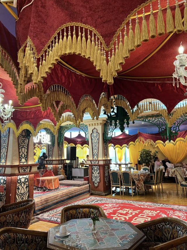 穿过干果摊的彩色山丘,无花果蜜饯的甜腻与玛仁糖的坚果风暴在舌尖引爆。二楼的民族宴厅里,烤全羊的油脂滴落炭火,与十二木卡姆的沙塔尔琴声共振。深夜食堂区更暗藏玄机:面肺子摊主用羊肠吹奏即兴旋律,玫瑰花酱馕与格瓦斯在味蕾上跳起塔吉克鹰舞。