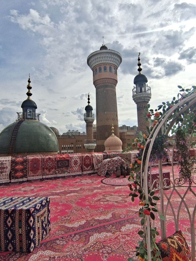白昼的巴扎是丝绸与铜器的物欲交响,黄昏后则化身光影迷宫:千盏民族灯笼亮起时,手工艺匠人在投影幕布上重现喀什老城打铜绝技。建议避开正午烈阳,趁傍晚在观景台捕捉夕阳给穹顶镀金的魔幻时刻,再潜入地下一层古董市集,从乌兹别克匕首的锈迹里破译粟特商队的密码。