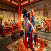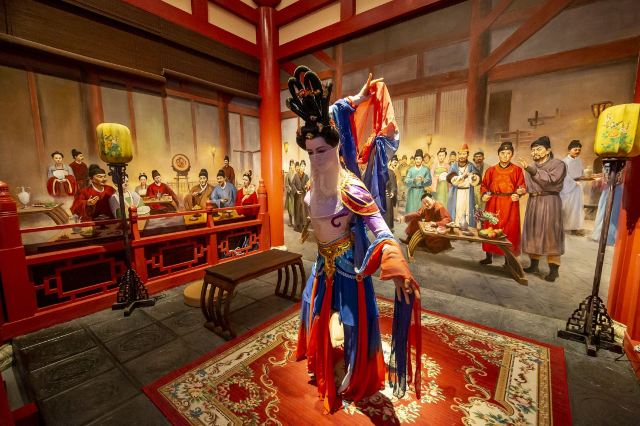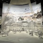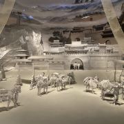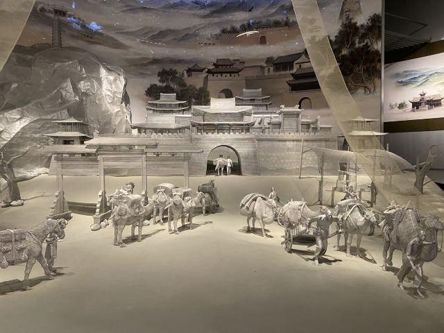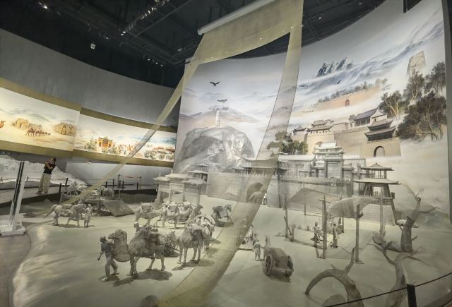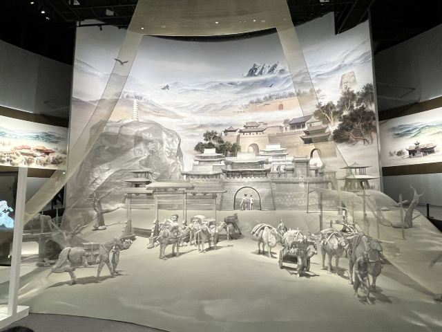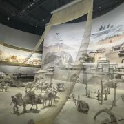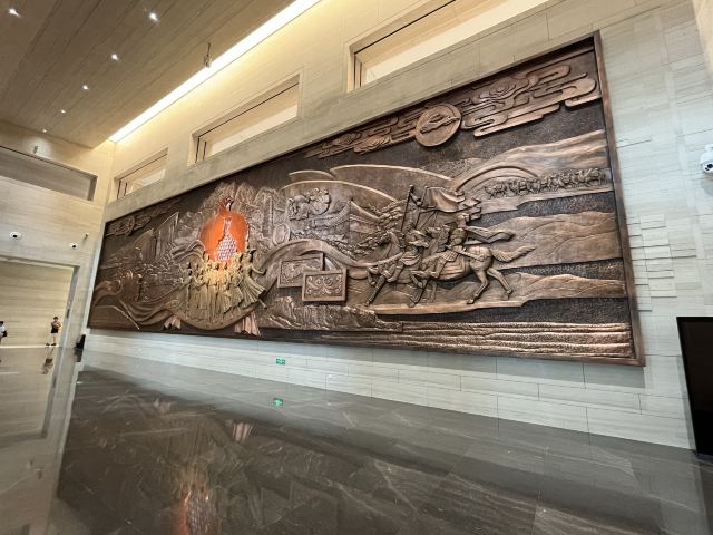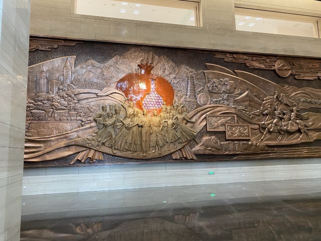 一层序厅:由巨型雕塑和主题场景组成,通过绘画、雕塑和影片三种方式呈现乌鲁木齐的历史画卷。
