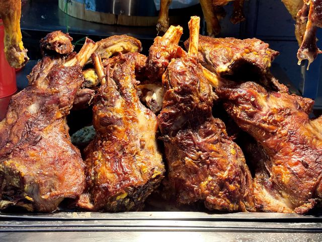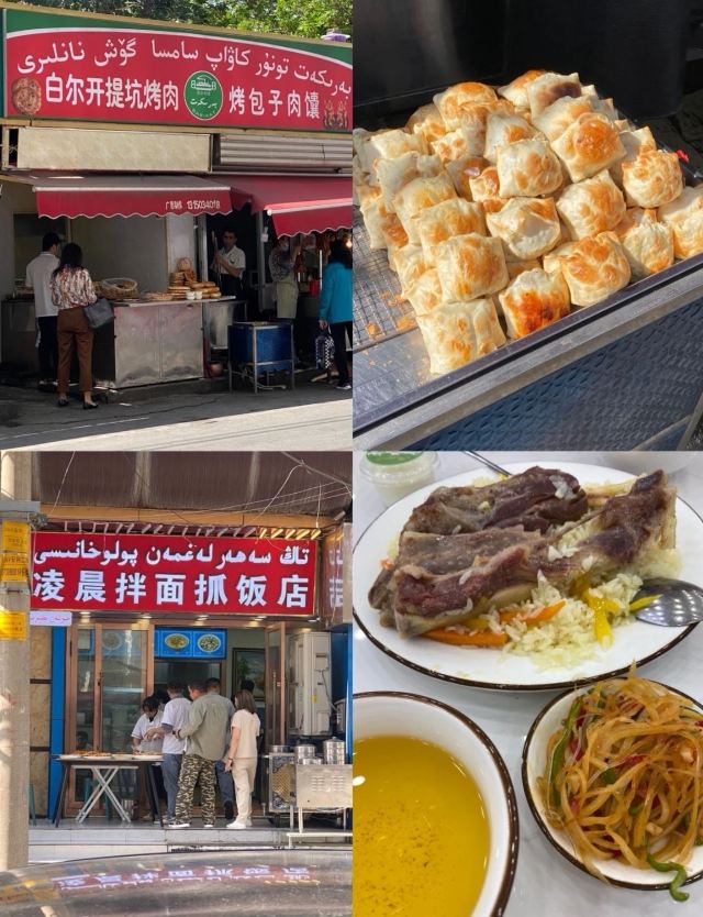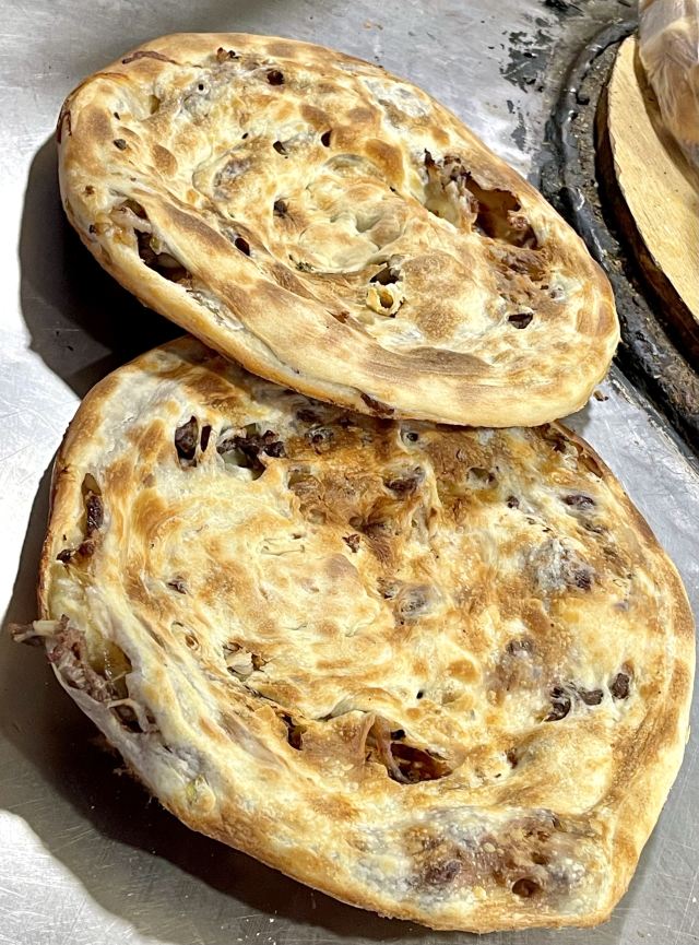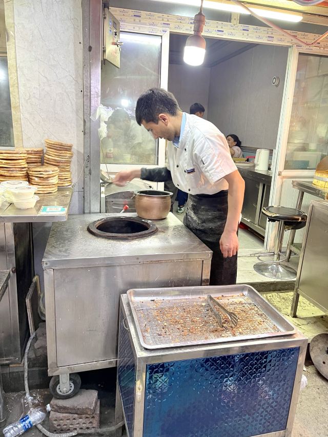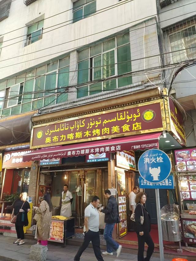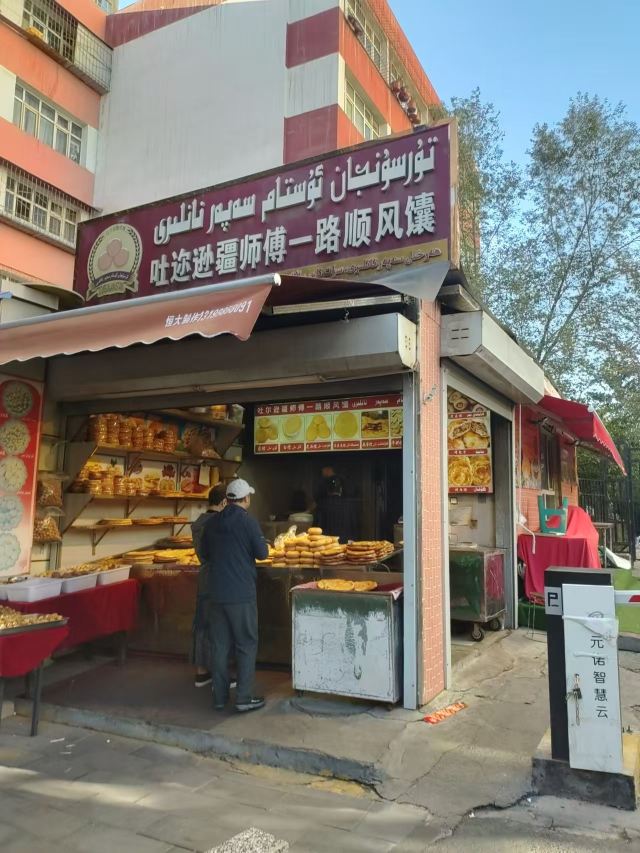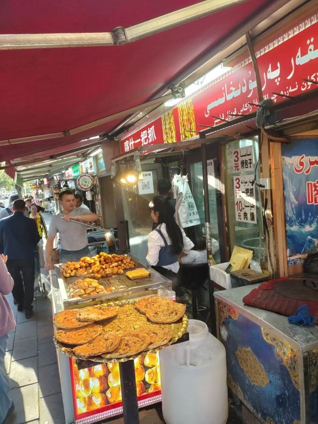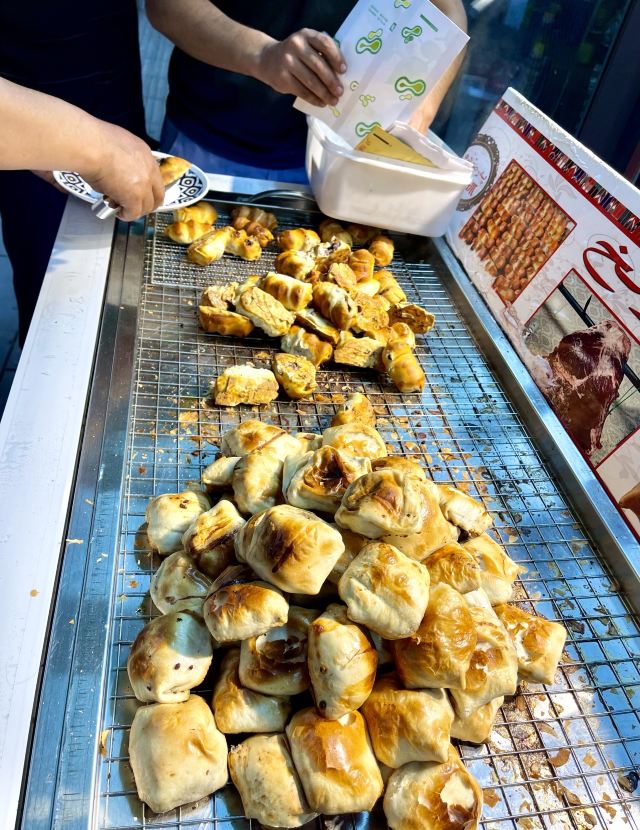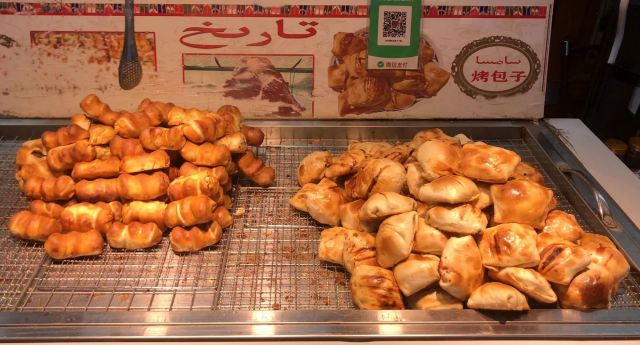 然后就是各种烤包子、烤馕,按照大小型状不同来区分不同的馅料,全部现烤现卖,香味扑鼻。白尔开特肉馕,以前排名乌市小吃榜第一名,但这次尝了一个,感觉味道比去年来那次退步了不少,门头也换了,还改了一个字,一个小孩子在负责售卖,不知道什么情况。