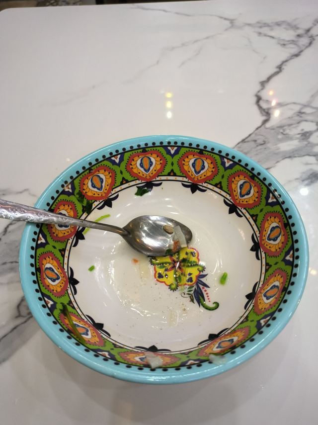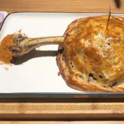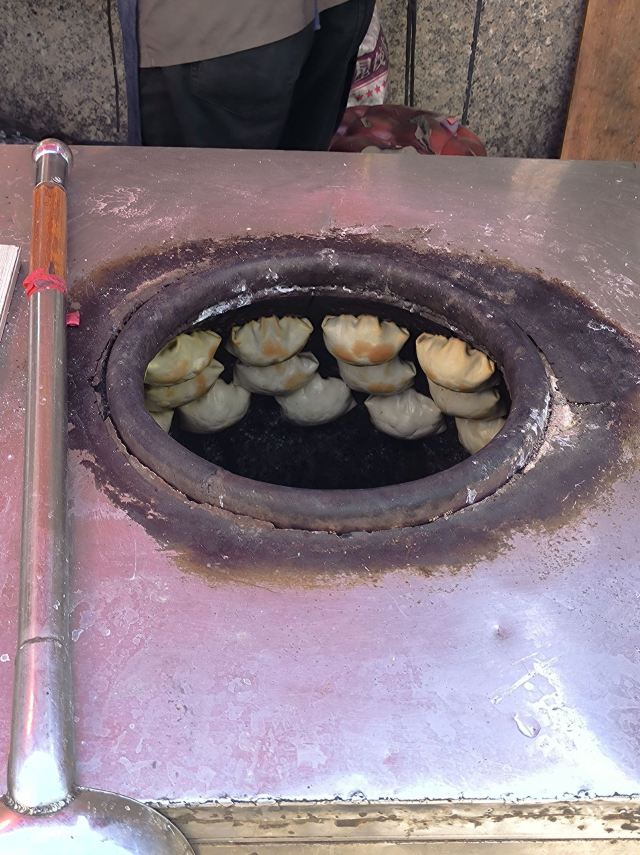 还有一个牛肉水煎包,颜色金黄,尝试了一下,也很好吃😋。