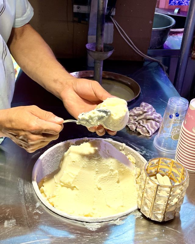吃的东西实在太多,先介绍一下这个冰淇淋,这是很多人从小吃到大的,虽说是纯天然牛奶制作,但特别清爽,直接从旁边一个飞速旋转的桶里打出来。