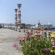 高松港是四国地区的关键海上门户,以其作为濑户内国际艺术节的母港而著称。港口与多个艺术岛屿相连,如直岛、丰岛和小豆岛,每天有高速船往返于这些岛屿之间。港区内设有三处引人注目的永久艺术装置:大卷伸嗣的《LiminalAir》、林舜龙的《种子船》,以及由谷口吉生设计的客运码头玻璃幕墙,这些作品在晴天时尤为引人注目。轮渡大厅内设有行李寄存柜和艺术节信息中心,游客可以在此获取中英文的岛屿地图。步行即可到达玉藻公园的天守台遗址,建议在清晨或轮渡靠岸时段拍摄港口全景。港区西侧的防波堤是傍晚散步的理想地点,退潮时还能看到昭和时期的系船柱遗迹。