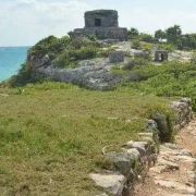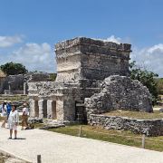 图卢姆玛雅遗址位于坎昆约130公里的加勒比海,是14世纪玛雅文化末期较为繁荣的宗教都市遗迹。有高达3.3米高的石墙环绕。古城里的建筑都是用石头砌成的,雕刻着图案花纹。据说,这是迄今墨西哥保存较为完好的一座玛雅和托尔特克人的古城。