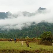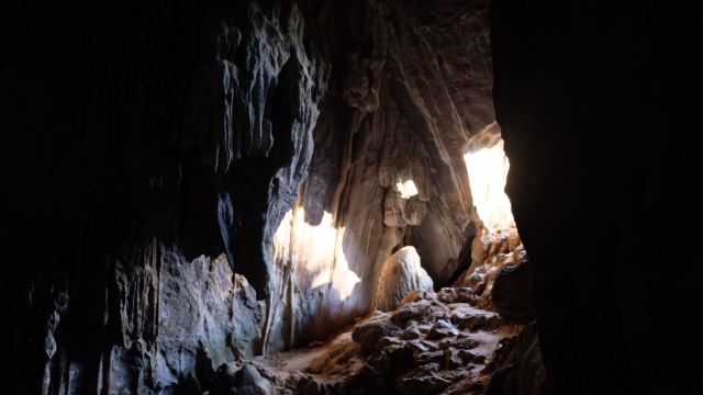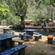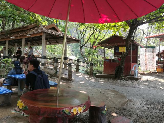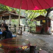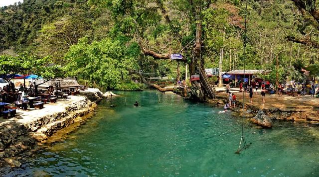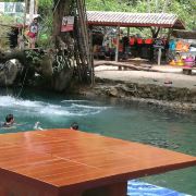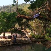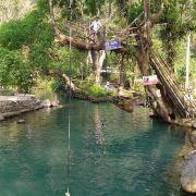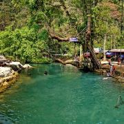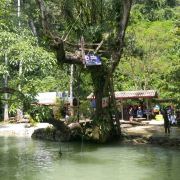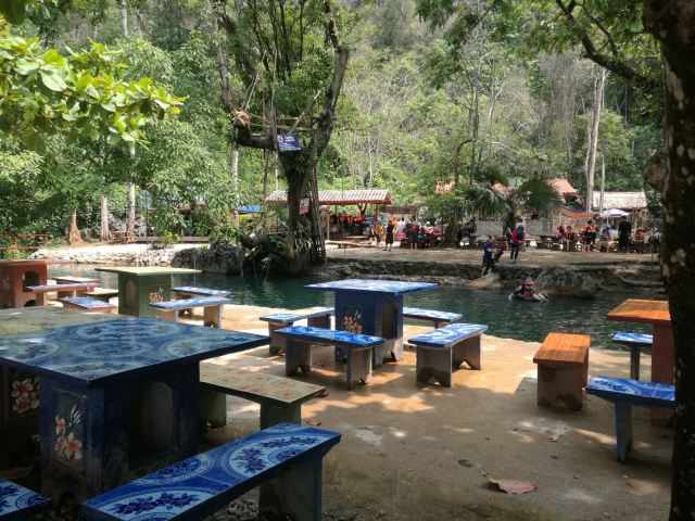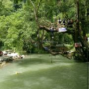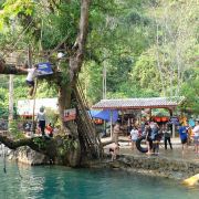 去坦普坎溶洞的沿途有非常原始的乡野风景,几条幽深的地道从主洞分岔进入山腹。山脚有条小河可供休息,河旁有棵大树,很多人爬到树上再跳下河,享受纵情流水的惬意。