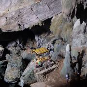 巨大的坦普坎溶洞是老挝人心目中神圣的地方,受欢迎的大部分原因是因为溶洞里的泻湖。艰难爬山后,畅游这片美丽的碧蓝色泻湖实在是太美妙了。主洞室供奉着泰国风格的青铜卧佛。