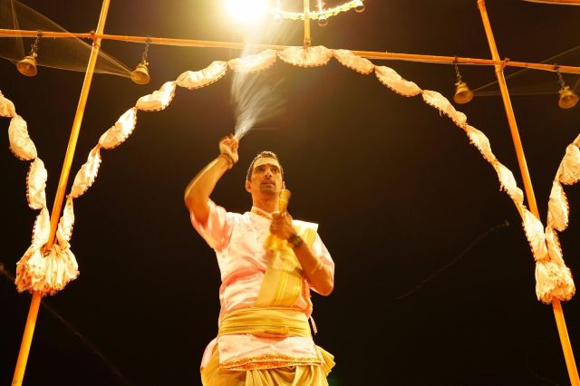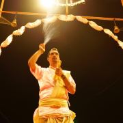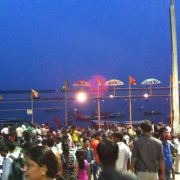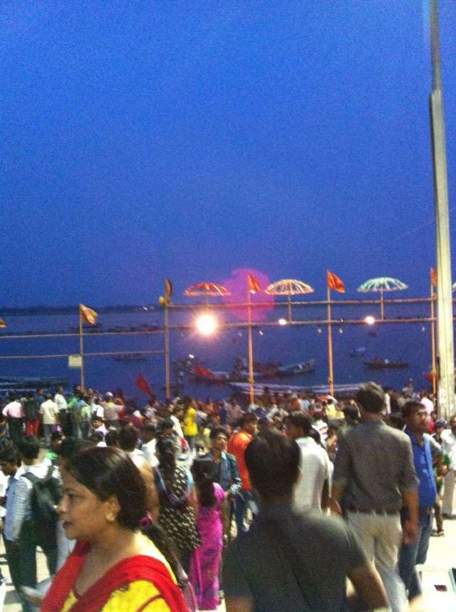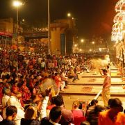 这里的夜祭分两组,靠上游的有七位祭司,靠下游的有五位祭司,两者相距数十米,每天开始时间相隔约十分钟。每天晚上这里祭祀活动都人山人海,其中PUJA仪式举行的规模最大。