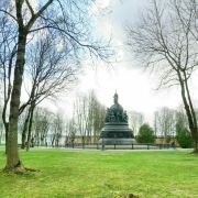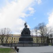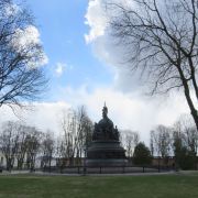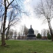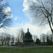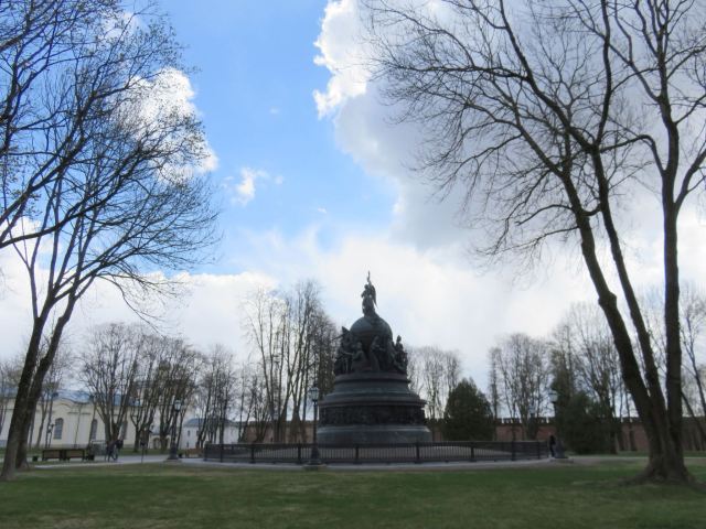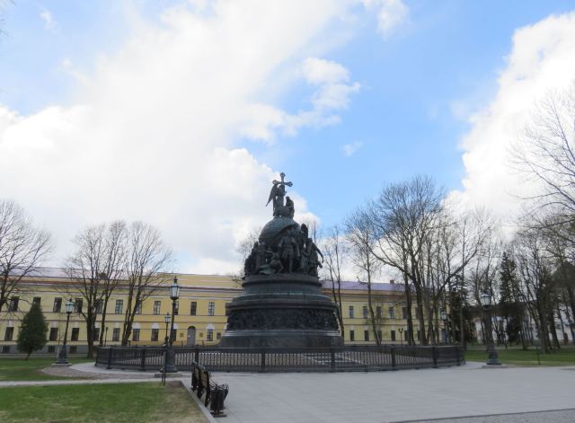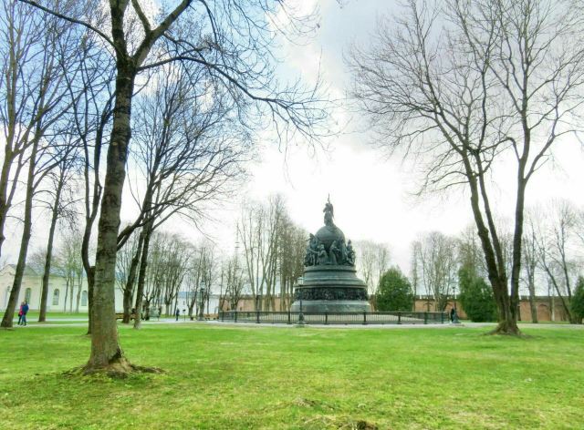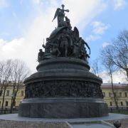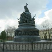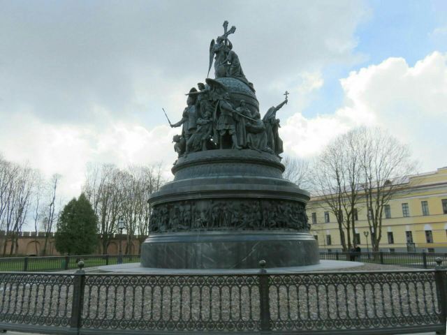 纪念碑建于1862年,为纪念留里克到来1000年。纪念碑分为三个部分,上面的是俄罗斯女神,中间一层是历代统治者,三层主要是历代文人和艺术家。