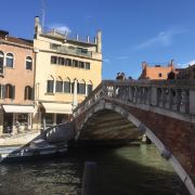 位于Cannaregio区,一座古桥,具体建造年代不详,但这座桥的造型非常美,完全用红砖起券,弧度还特别小,两边用大理石镶嵌装饰,显得非常轻盈。