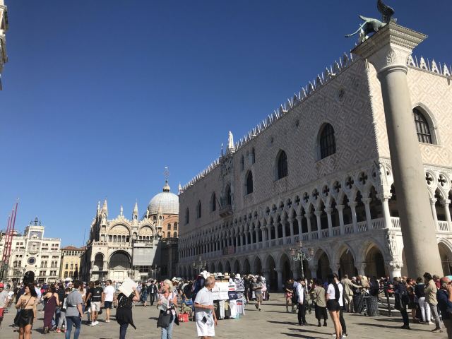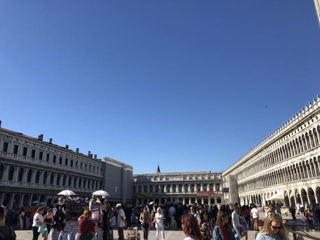 5分 超棒这是来威尼斯必须打卡的地方。一面是圣马尔谷圣殿宗主教座堂,可以进去看看,也能登到楼顶看威尼斯主岛全貌。排队的人很多,要早起去。广场其他三面是商业和餐饮,累了可以吃吃喝喝。广场上有海鸥,如果边走边吃很可能会被海鸥抢食。