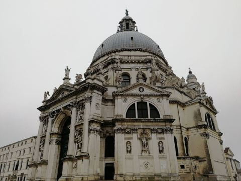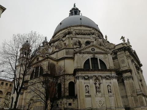 教堂简称为“Salute”,位于威尼斯大运河和威尼斯潟湖的圣马可港之间风景优美的狭长尖角地带,从水路进入圣马可广场者都可看见。它拥有次级圣殿的地位,其富于装饰性的独特外形和地理位置使之成为意大利较上镜的教堂之一。