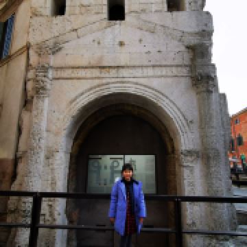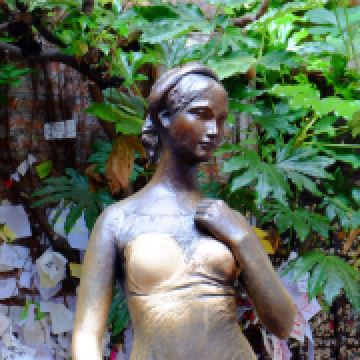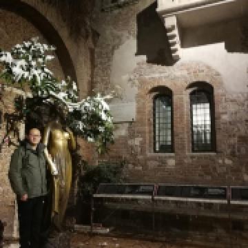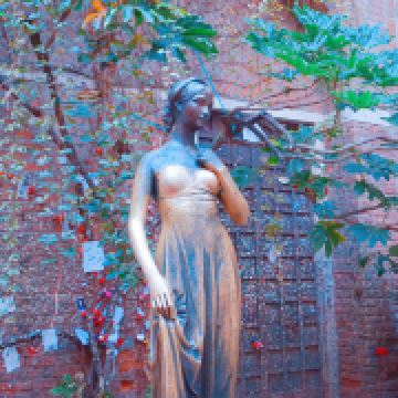 大门正面靠院墙是比朱丽叶的青铜塑像,据传,手摸朱丽叶的右乳许愿,便可得到她真诚的祝福,使有情人终成眷属。院子的右边,抬头便可看到举世闻名的“朱丽叶的阳台”。阳台不大,外面雕有简单的图案,两边可见两扇小窗。罗密欧就是在这个阳台下与朱丽叶密密幽会,互诉衷肠,并从这个阳台爬上去,与朱丽叶私定终身。有兴趣的话你可以另付费用进入阳台留影。