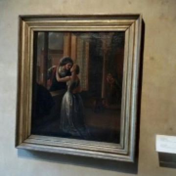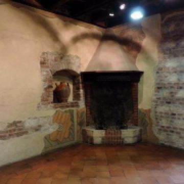 沿着楼梯上去,就进入故居的内部。楼上开放的房间有十几间,配有床、桌椅、柜子和其他简单的家具和摆设,色彩形态古朴庄重。二楼厅里中央有一圈玻璃桌柜,里面摆着各个时期知名画家根据莎士比亚“罗密欧与朱丽叶”的剧情所绘制的图画。