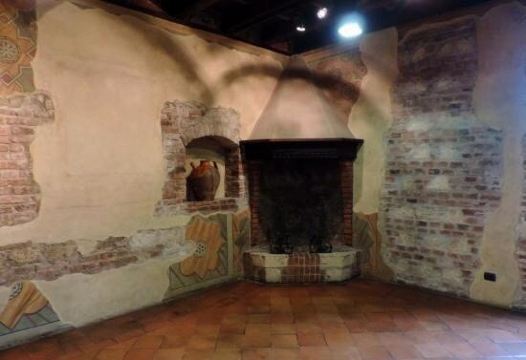 进入故居的接待厅,墙上挂着壁画,墙角摆放着莎士比亚的头像雕塑。楼梯旁摆放着一个醒目的支架,上面是一本木质的大大的打开的书,左页是1936年黑白电影“罗密欧与朱丽叶”剧照,两人甜密地依偎在一起,右页是莎翁剧中两人互倾衷情的对白。这本打开的书引导着我们浏览了朱丽叶生活过的各个房间。根据不同房间的主题,打开书中的情节也一路延伸,化妆舞会、一见钟情、卧室相会、神父证婚、朱丽叶抗婚、墓地殉情等,有兴趣的可以看一下。