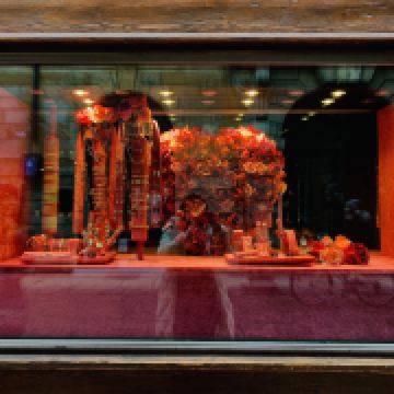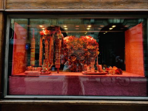 故居门口的大街上有很多小店铺,都是售卖罗密欧与朱丽叶的纪念品,其中有一家专门在围裙上绣字的店铺。店里摆着各种围裙,游客可任意挑选,店家会按游客的意愿在围裙上绣字,多是绣恋人的名字,或表达爱意。一件围裙加上绣字价格在15到20欧元,喜欢的话可以买一件留作纪念。