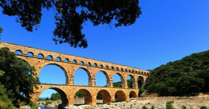 为了向尼姆(Nîmes)输水而在2000年前设计建造的加尔桥,是世界较高的古罗马水道桥(48米),体现了古罗马工程师们的技能。这座保存状况完好的水道桥被列为教科文组织世界遗产,它坐落在一片占地165公顷并且拥有地中海风景的自然环境内。这件古罗马文明的瑰宝建筑一直有世界各地的旅行者前来造访。5欧元纸币上的图案就是加尔桥!