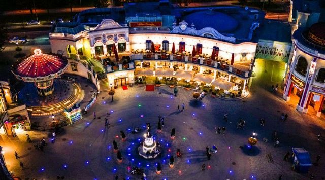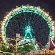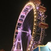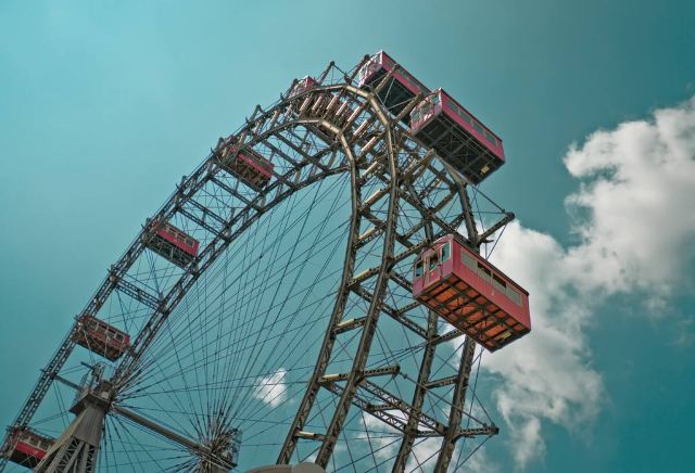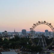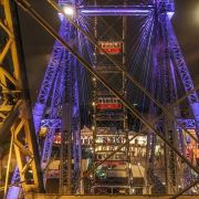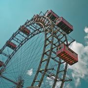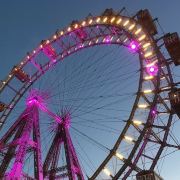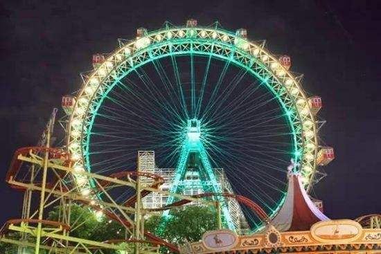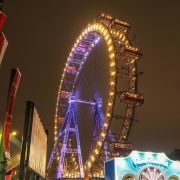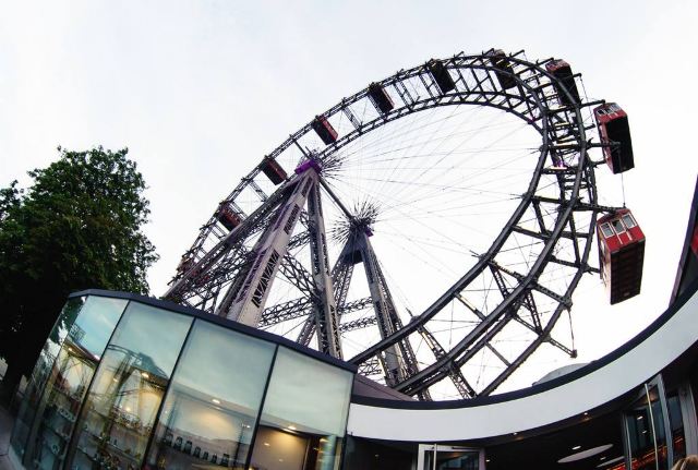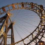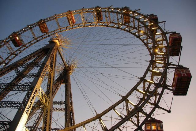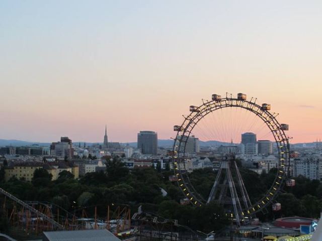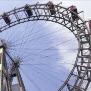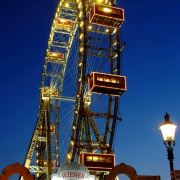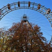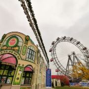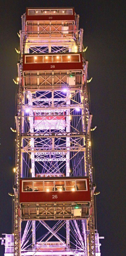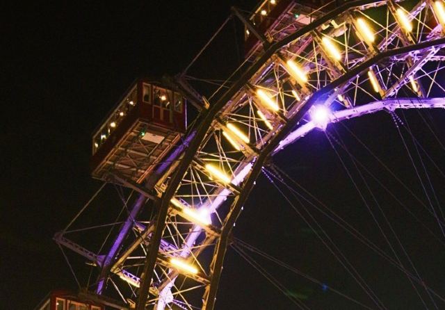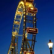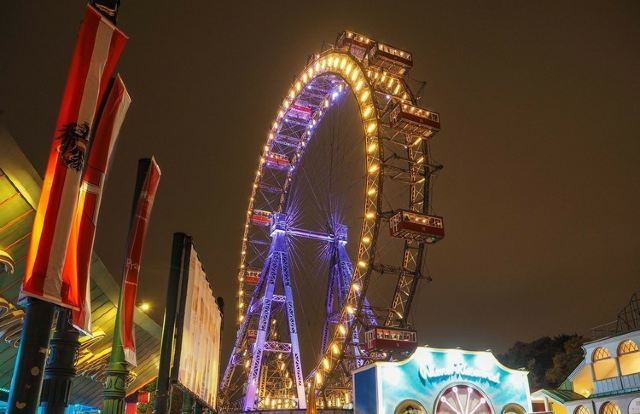 普拉特公园里的维也纳摩天轮是城市的地标之一。为纪念弗朗茨·约瑟夫皇帝登基50周年,维也纳人在1897年建造了这座摩天轮。维也纳摩天轮坐落在普拉特游乐园右侧的入口处,高65米,直径近61米,通体钢制结构重达430公吨,转速为2.7千米/小时。一直以来,它都是维也纳天际线的象征,坐拥这座多瑙河畔之城的旖旎风光。