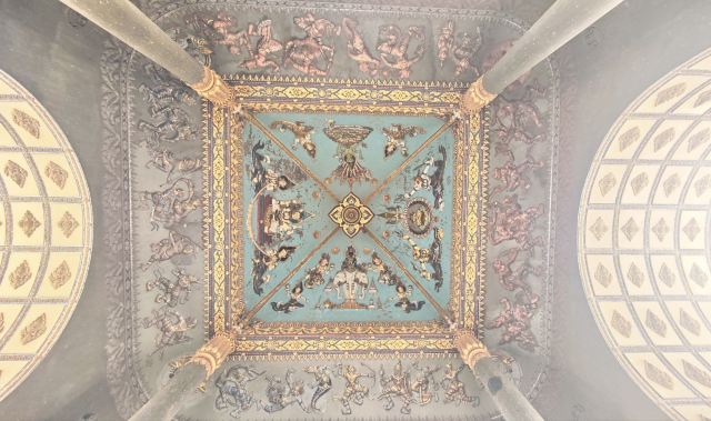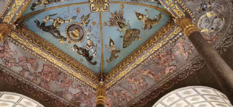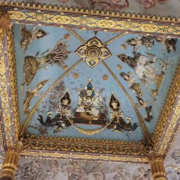 万象凯旋门四面的造型完全相同,拥有典型的老挝风格雕刻和装饰,天花板是一大亮点,上面刻有佛教神话人物的彩绘,雕刻精美,金碧辉煌。该建筑共有七层,一至四层是室内,三四层有销售纪念品的店铺,五六层是室外,可以远观风景。走过150多级的螺旋阶梯,登上第七层,从设计精美的窗户看去,万象城区的景色便尽收眼底。