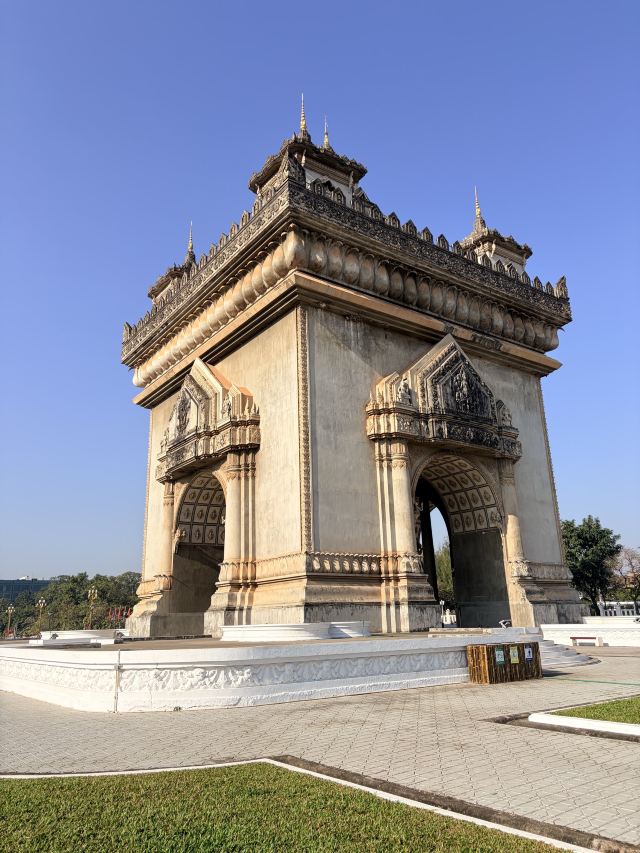 万象凯旋门坐落在市区正中区,是万象的标志性建筑。门上面雕刻的佛像和神话故事中的人物等,充满了宗教的色彩。