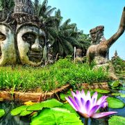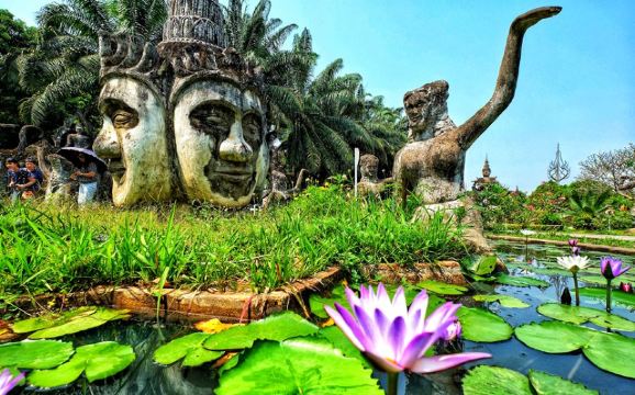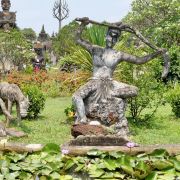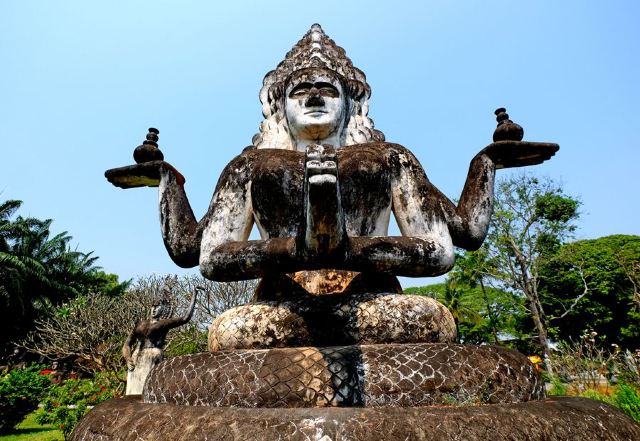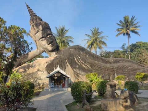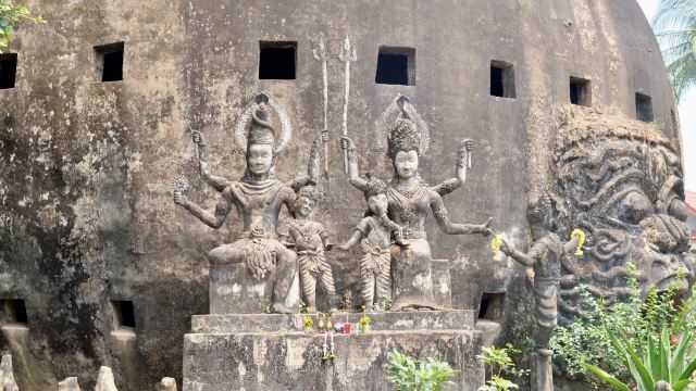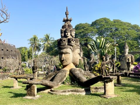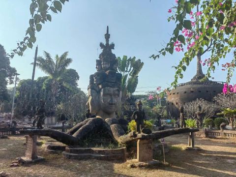 佛像公园(Buddha Park)位于万象东南约25公里的湄公河畔,又名香昆寺。这里是一个雕塑公园,汇集了近百座各式各样的佛像雕塑,形状各异、千奇百怪,融合了佛教和印度教风格。