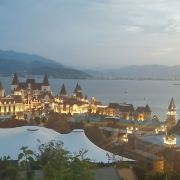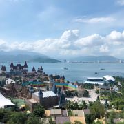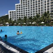 5分 超棒性价比挺高的一个好去处。预定的是海景别墅6天,有3个房间,出门就是大海,自带泳池。酒店的水比较贵,大概15人民币一瓶,自助餐一般,海鲜个头挺大,但是做的不好吃,吃饭可以选择的不多。水上游乐场很好玩,里面的水和水果都很便宜,水大概4块多人民币一瓶,水果8块人民币一小盒,可以刷卡,吃饭都以快餐为主,也有BBQ 之类的。门票大人80万越南盾,4岁以上的孩子70万越南盾,一天内可以无限次往返,游乐场设施都有身高限制,大多都是1.3以上的孩子能玩。在酒店住的话,坐缆车可以不用排队,有快速通道,出示房卡就可以。岛上不允许自己带水和食物,入岛之前会签协议,发现会罚款500美金(别让发现就基本没事)。游乐场还有夜间票,大概120万越南盾,晚上9点关门。