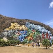 这是一幅依山而作的画,气势磅礴,非常雄伟,适合拍照留念,周围还有餐厅,人们也可以在此野餐。