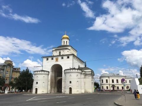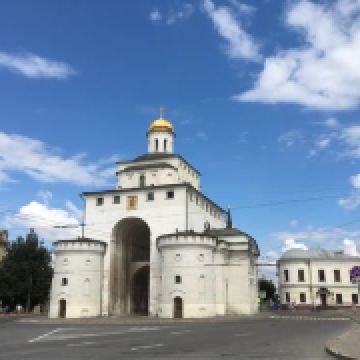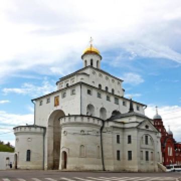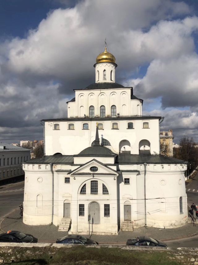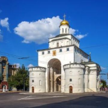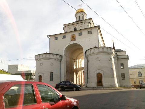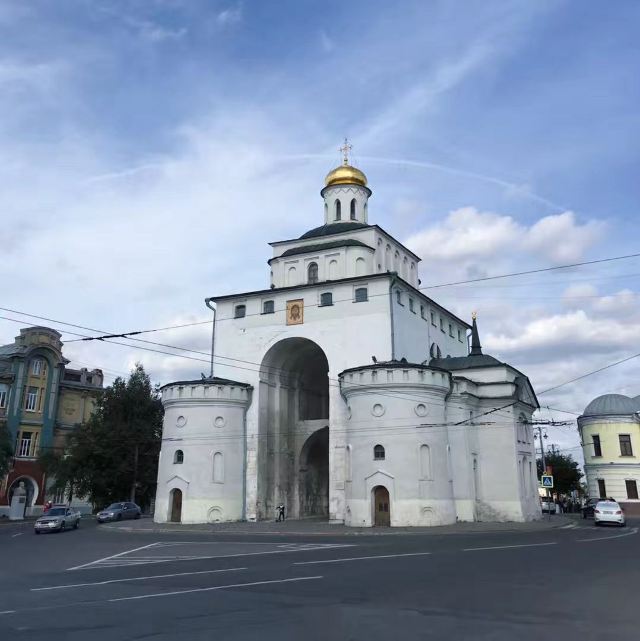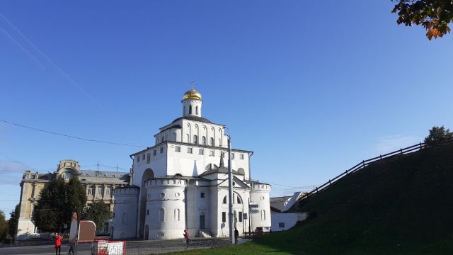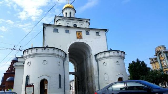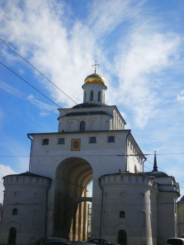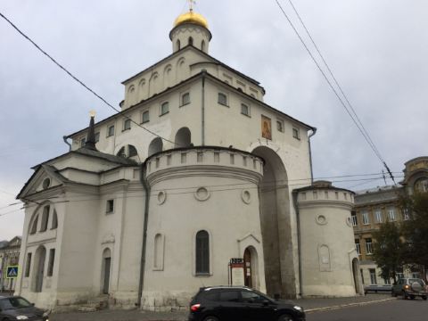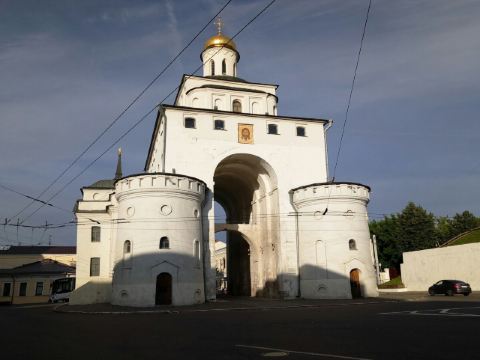 金门位于城镇中心附近,是座罕见的军事建筑,象征着弗拉基米尔的不可攻破和殷勤好客。要塞大门是用橡木包铜再镀金,所以称为金门。在建筑上方,有一个象征胜利的白石玉拱,建筑坚固,墙壁厚实,4层楼的地方是金门的博物馆,博物馆以历史文物和场景向游客介绍弗拉基米尔的沧桑历史。